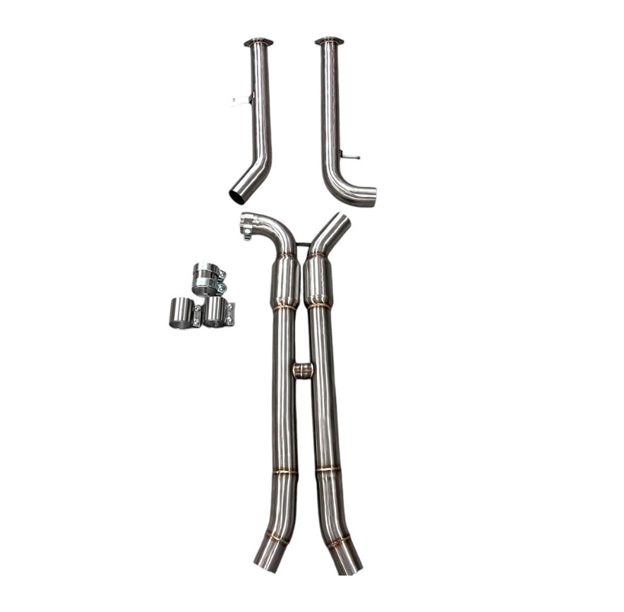 - Full dual midpipe H-pipe assembly