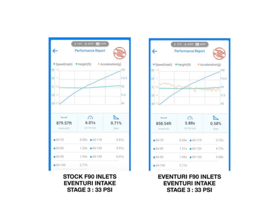 Fitment for F90 M5, F9X M8, also fits with stock airboxes.