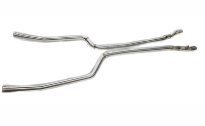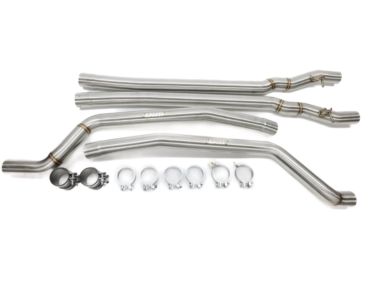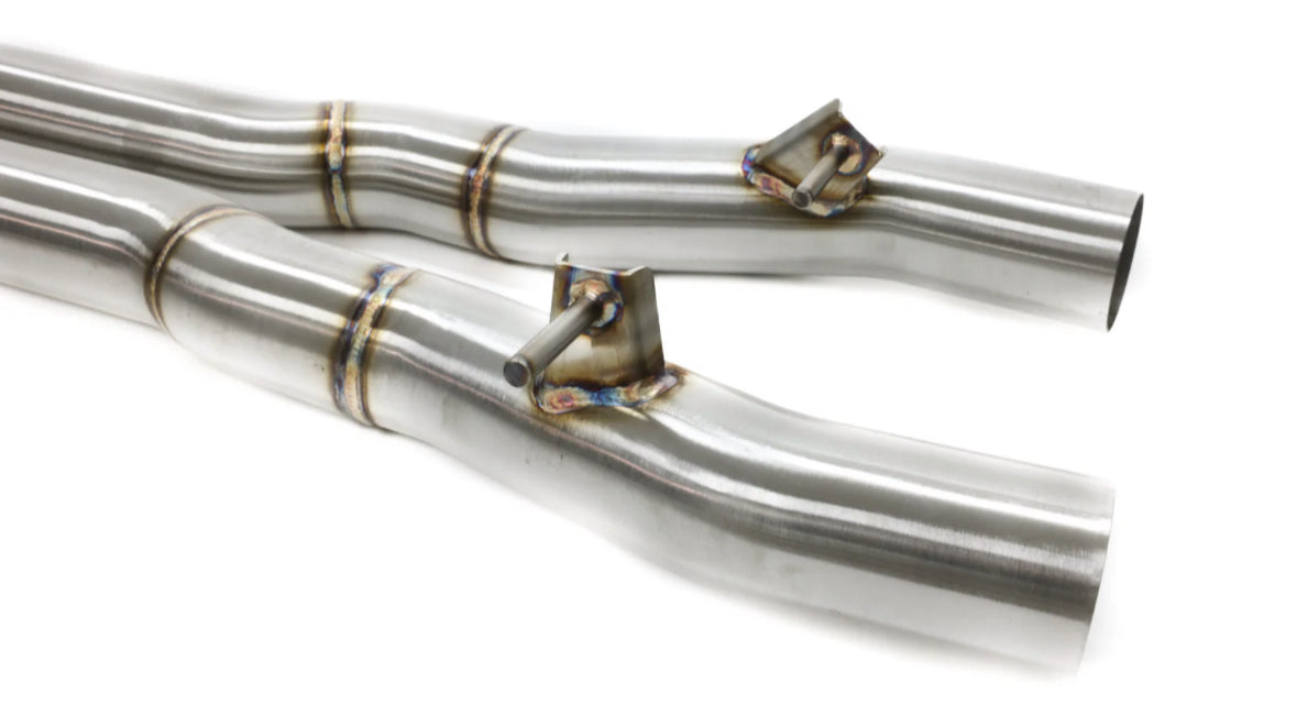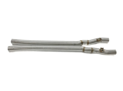 The ARM N63 Midpipes are a full 2.75" system which connects to the OEM axle back section to retain the OEM valve controls and exhaust tips. The ARM N63 Midpipes are compatible with either the OEM N63 slip-fit downpipes or the ARM N63 Downpipes. If you have an original 2-Bolt style (Pre-2012) downpipes, you can convert to the slip-fit style connection by ordering the ARM N63 Downpipes and N63 Midpipes.
