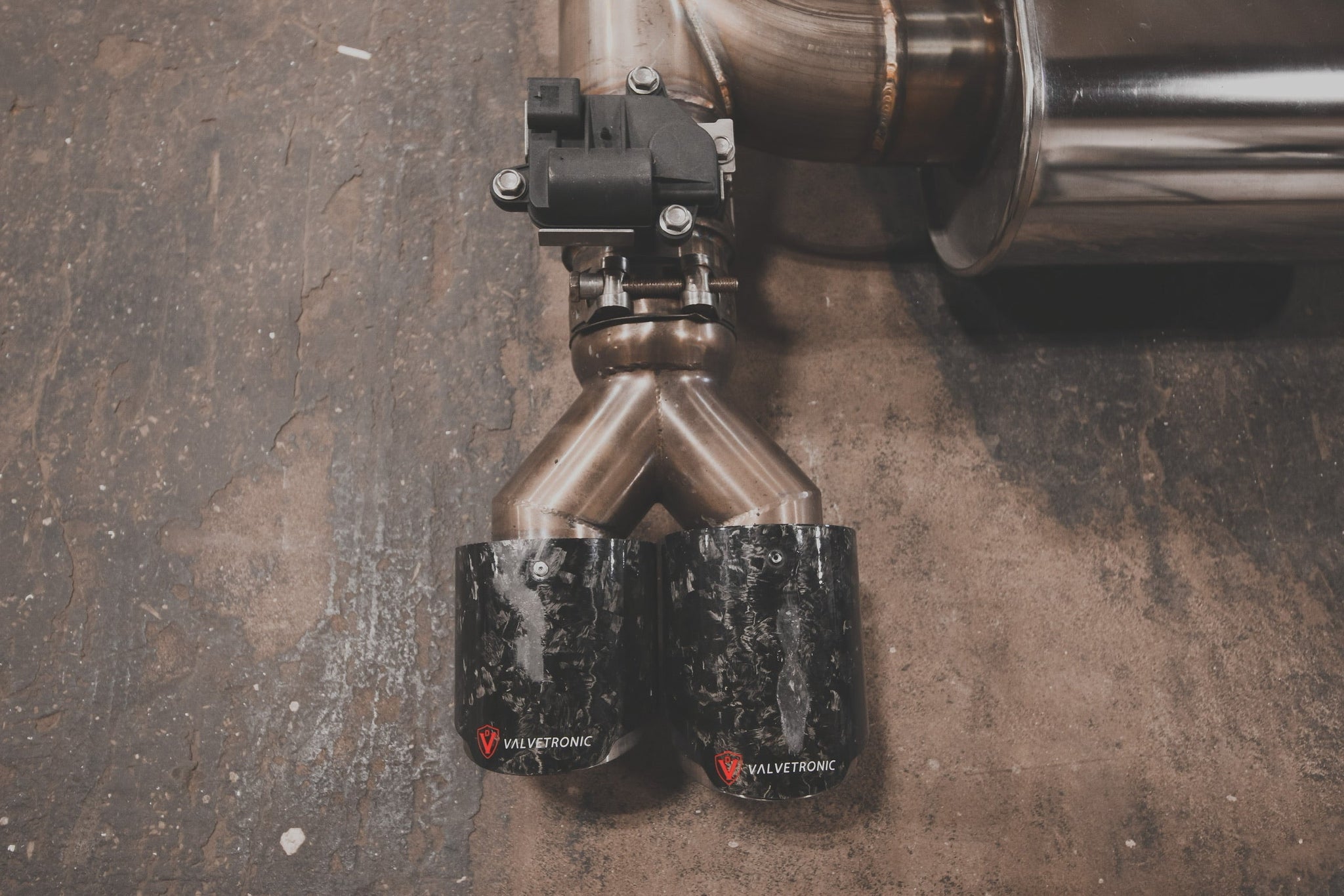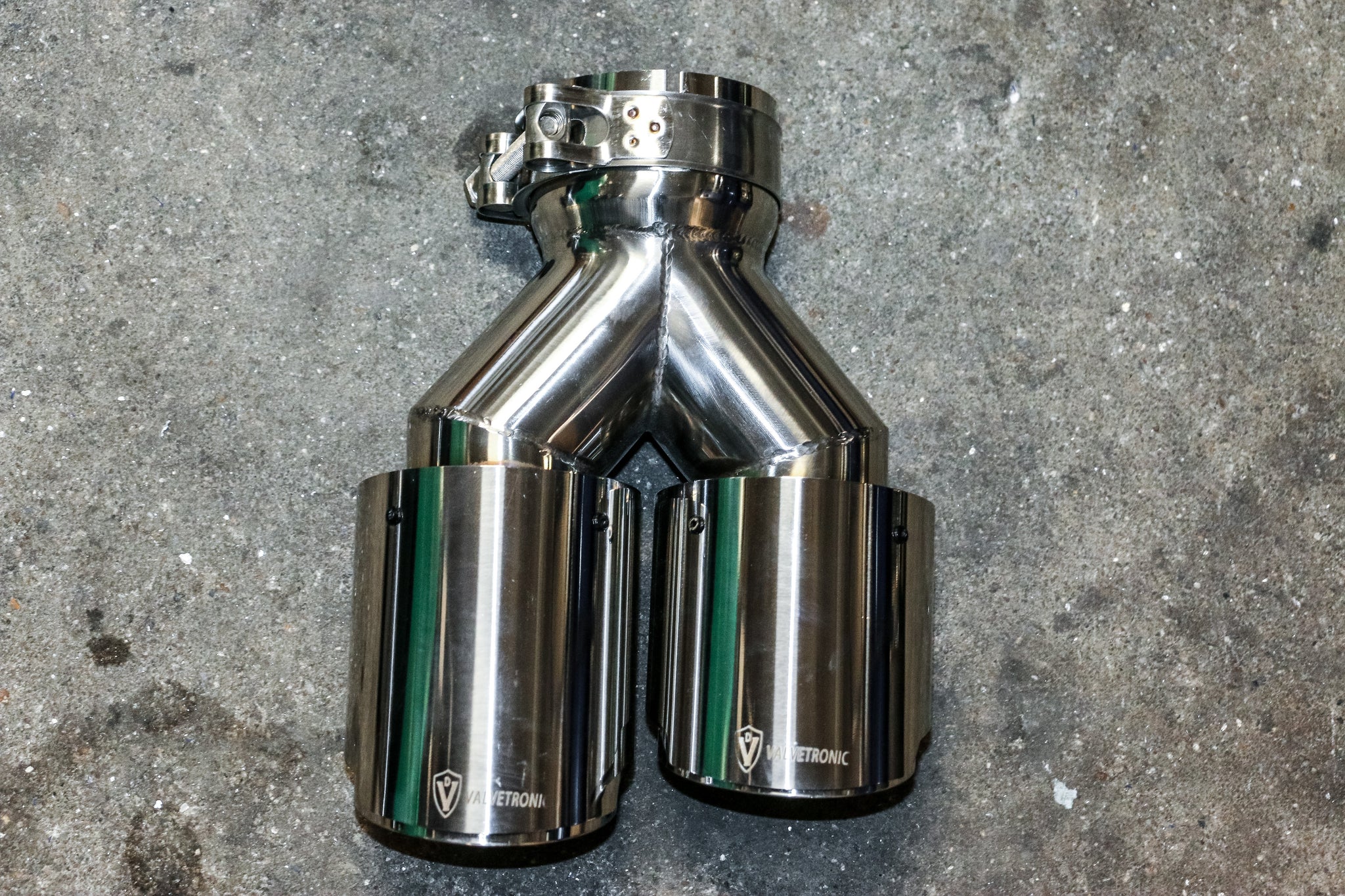 Welcome to the Valvetronic Designs catback exhaust system for the F8x platform, or in other words, the solution to the F8x sound problem. For years enthusiasts have been wanting to find a solution to the buzzy and raspy sound these cars produce from the factory. Since these cars were released back in the late portions of 2014 we all knew there was an amazing sound lying under all the rasp. Our mission has been to find this hidden sound and allow all F8x owners to enjoy it. This full catback starts as a dual 2.5-inch setup featuring 2 resonators to eliminate the unwanted rasp. From there the system travels back and merges into a single 3.5 inch pipe. After the merge, the exhaust either exits out of the Drivers side exhaust tips when the valves are open or passes through our quad chambered muffler and out of the passenger side exhaust tips when the valves are closed for a lower volume experience. This system mounts up to factory mounting points and is a direct bolt-on. No cutting or welding necessary. Its time to make the F8x sound like it always should have.