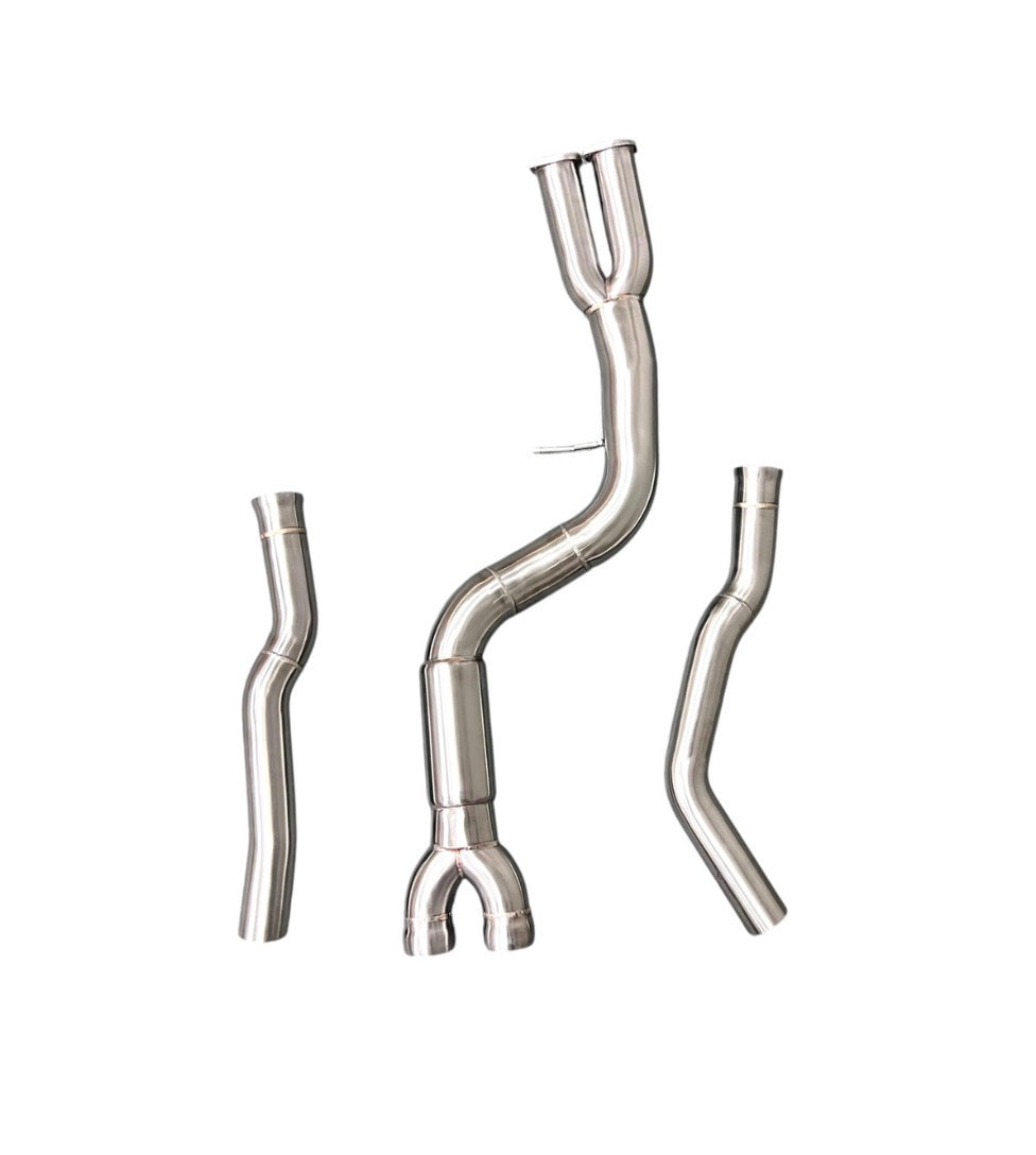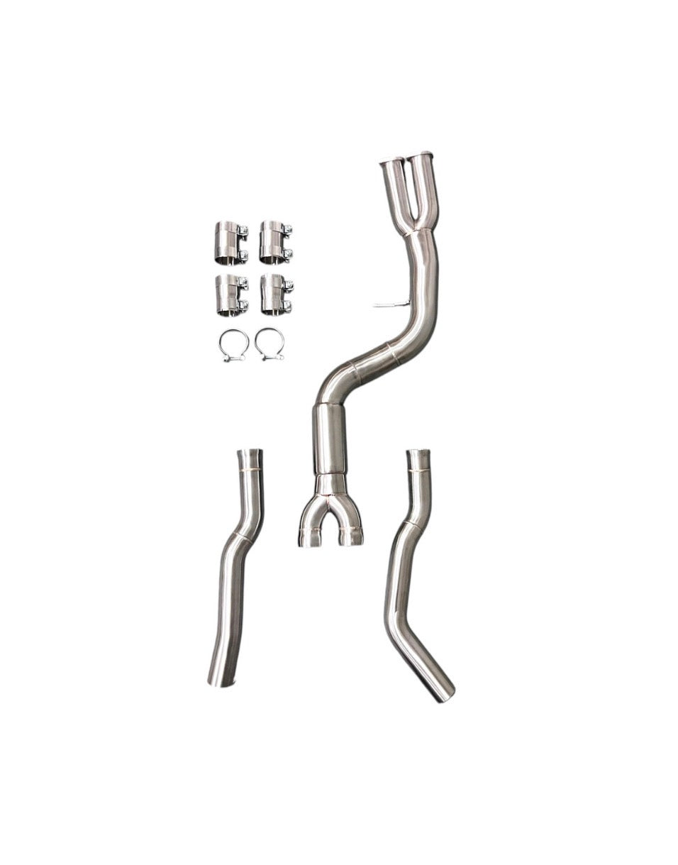 Each midpipe includes a custom brace to maintain proper chassis clearance and perfect fitment. The system installs easily with only 2 cuts required on the factory exhaust system and Included clamps.