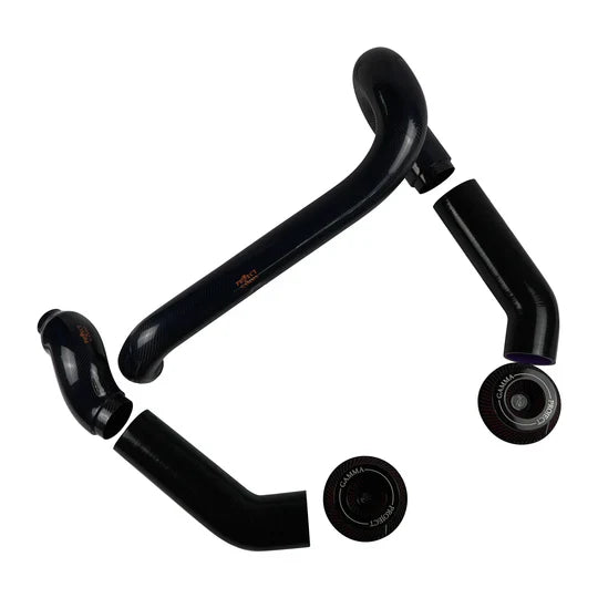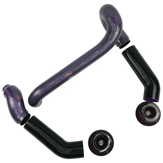 Project Gamma intakes for the M3 | M4 (G80/G82/G87) models feature a highly durable carbon fiber and carbon kevlar construction. Our carbon intakes are a 2 piece system with a 4 layer reinforced ply silicone extension that channels the airflow straight form behind the grills. This presents an improved airflow and horsepower figures when compared to the stock intake system.